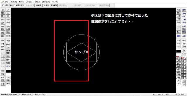 ある図形に対して普通に範囲指定をするとその指定範囲内にあるパーツが選択されます。例えば下の図形に対して左半分だけ範囲指定をしたとします。
