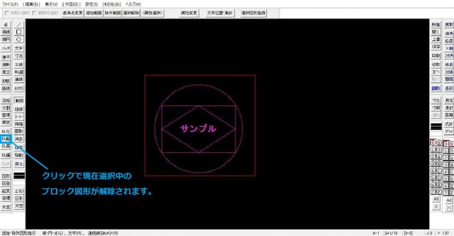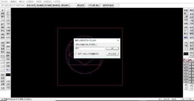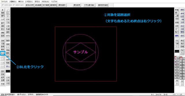 「BL解」はブロック化された図形を選択して初めてクリック有効になります。