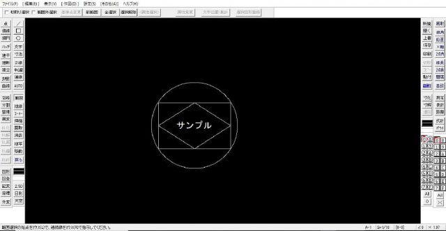 では実際にブロック化の操作をしていきます。先ずはブロック化させたい図形を範囲選択します。(サンプル、という文字も対象にするため右クリックで範囲選択します)
