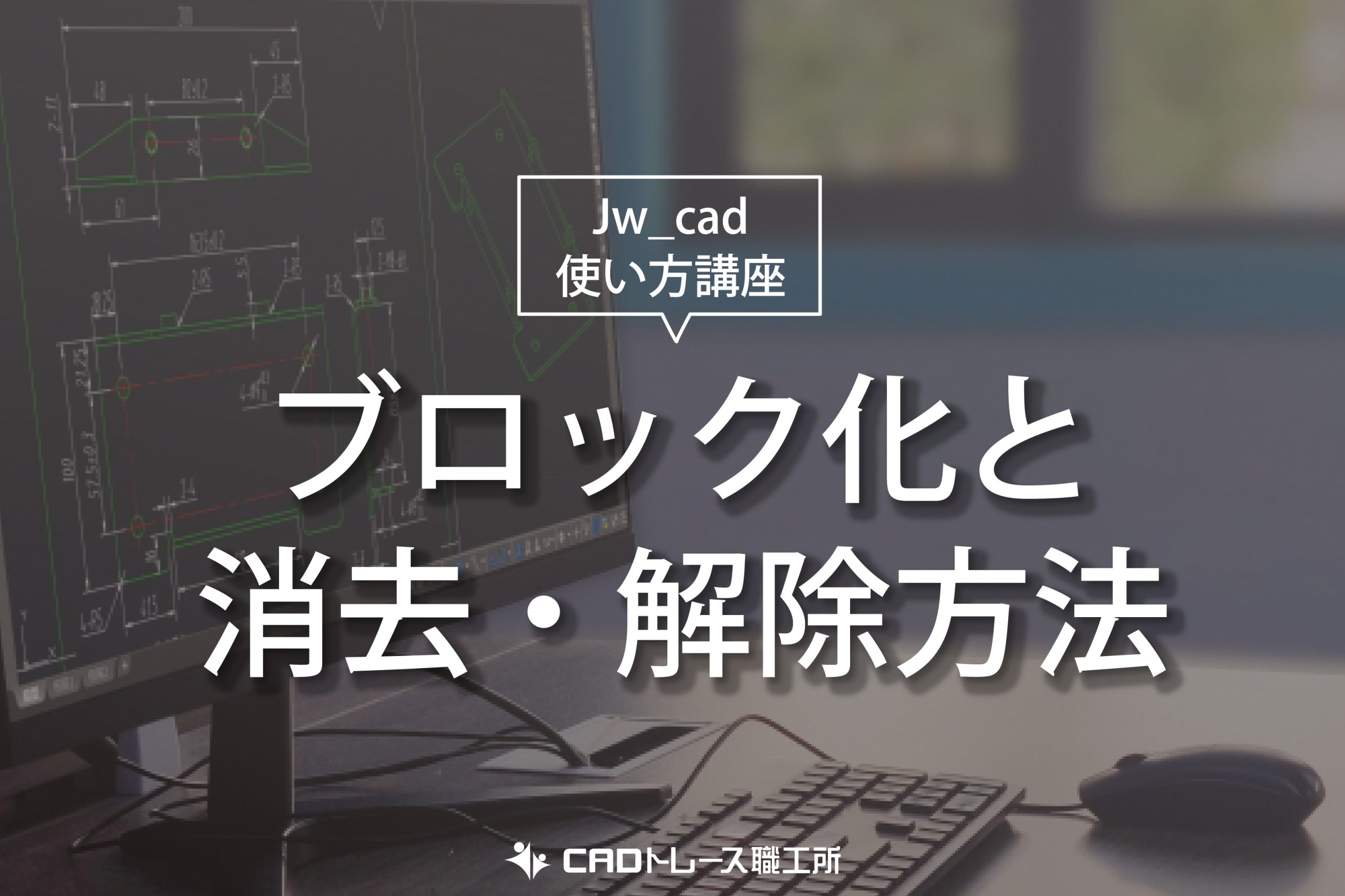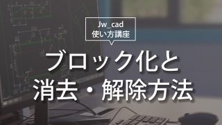ブロック化とは各パーツ(線や円、文字など)を一つの図形として扱う操作の事を指します。このブロック化を行う事で、ある一部分を不要に消してしまったりなどの誤操作を防ぐ事が可能になります。また、複数のレイヤーに分けていた各パーツは一つのレイヤーに集約されることになります。
