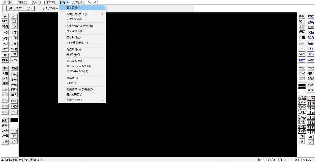 ソフトを開いてさっそく作図に掛かろう!と意気込んでしまいますがその前に必ず設定しておいてほしい項目があります。ファイルの自動保存です。