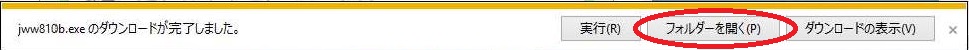 「フォルダーを開く」をクリックします。インストールファイルの保存先のフォルダが開くのでインストールファイルが正しくダウンロードされた事が確認できます。