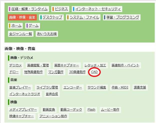 ② アクセスしたらトップ画面から 画像・映像・音楽 > (画像・デジカメ)Jw_cad の順にクリックしていきます。