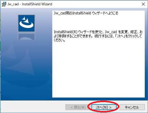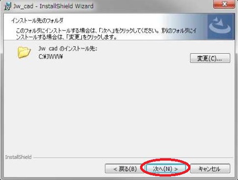 「次へ」をクリックします。(インストール先が変更できますがしなくてOKです)