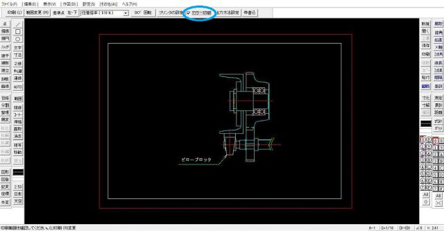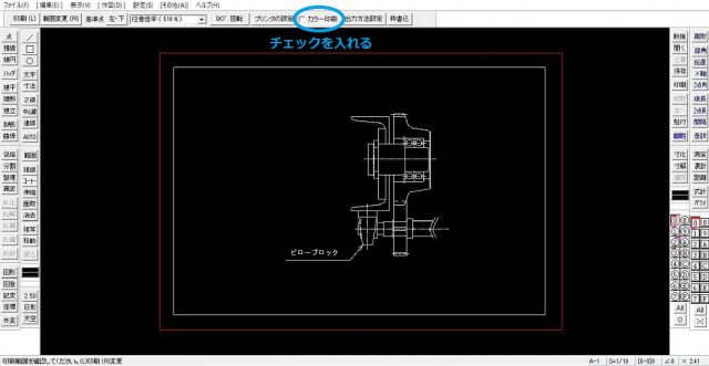 この状態で印刷を実行すると、カラー出力されます。カラー出力が必要かどうかは図面の内容で判断しましょう。