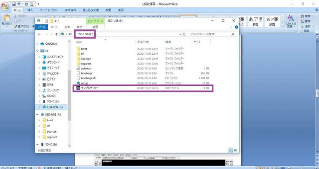 USBドライブにデータを保存しよう