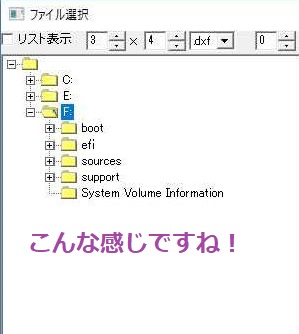 (F)ドライブはUSBメモリのドライブだったので、間違いなくUSBメモリに対象のCADデータが保存されたことがわかります。