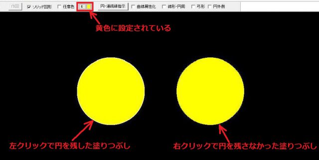 左クリックで塗りつぶした場合:元図形(円)を残す