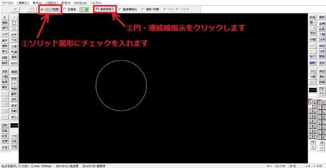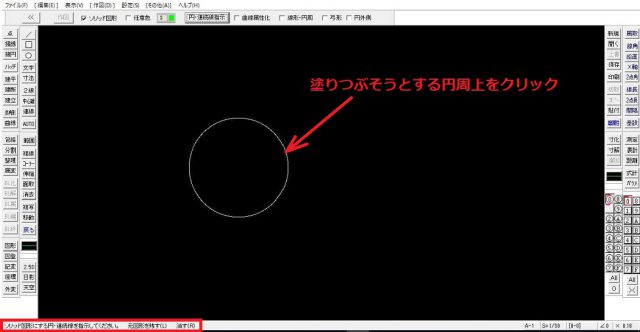 塗りつぶそうとする円をクリックすれば塗りつぶしが完了しますが、この時に左or右クリックどちらで実行するかにより、円を残すか残さないかを使い分けをすることが出来ます。