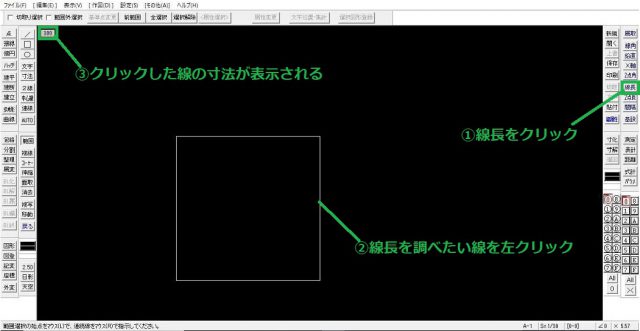 線長コマンドは選択した線の長さをクリック一発で調べられます。
