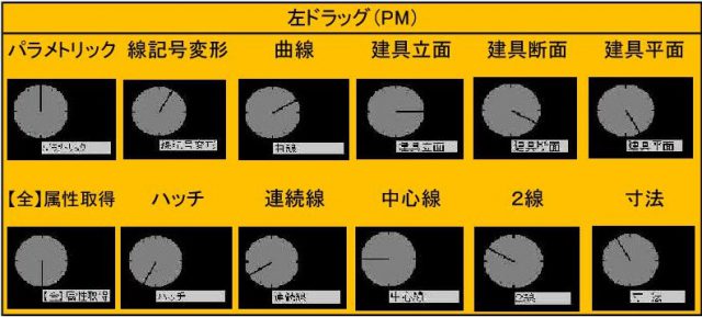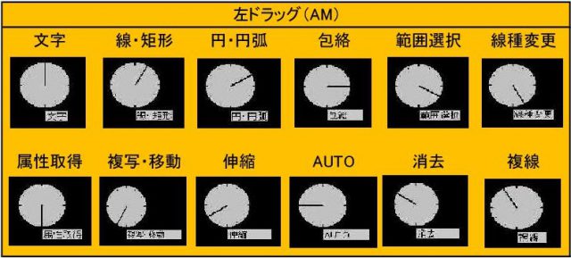 それぞれの状態にコマンドが割り当てられており、それを左ドラッグ、右ドラッグで使い分けすることが可能です。