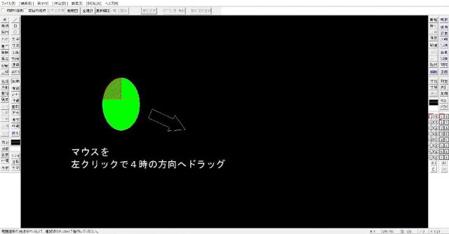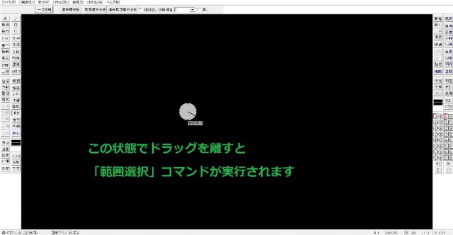 クロックメニューは作業領域内でマウスをドラッグすることで実行できます。例えば「範囲選択」のコマンドをクロックメニューで実行します。