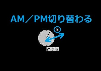 表示されたクロック表示の中に一度マウスポインタを入れて、再度クロック表示の外に出すとAM⇔PMが切り替わります。