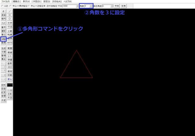 作り方は多角形コマンドで角数を3に設定すればOKです。