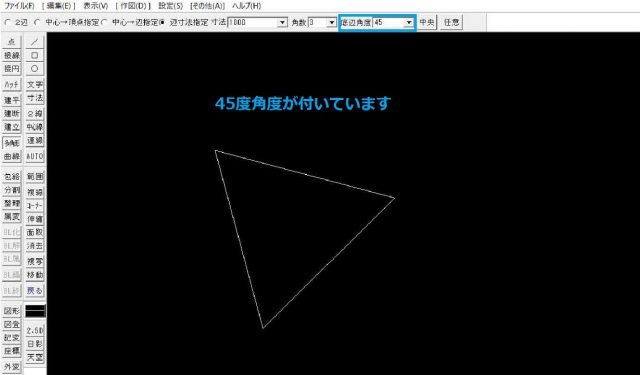 三角形を作成するにはこれだけでOKですが、あとは大きさや傾きなど細かく設定する事も可能です。