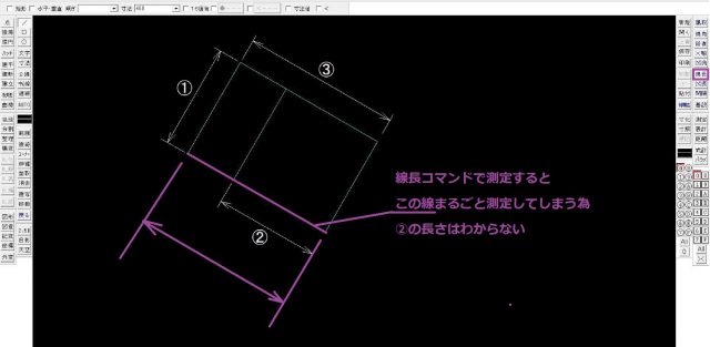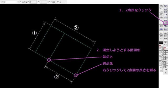 こういった場合は「2点長」というコマンドを使うと測定することが出来ます。