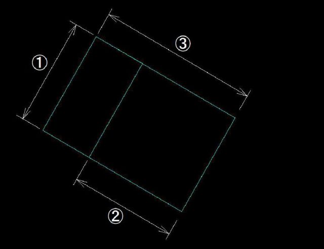例えば下の図の各①~③までの線の長さを測定してみます。