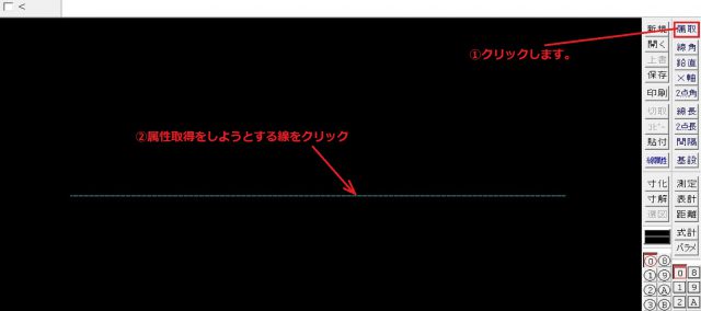 やり方は簡単です。右側ツールバーのをクリックします。すると属性取得が出来る状態となりますので、その状態で属性取得したい線をクリックして完了です。