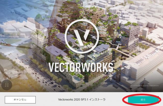 5. インストーラーが開いたら続行をクリックし、インストールの作業を開始します。