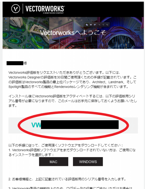 次のページで、評価版お申し込みフォーム下のVectorworks評価版を申し込むをクリック
