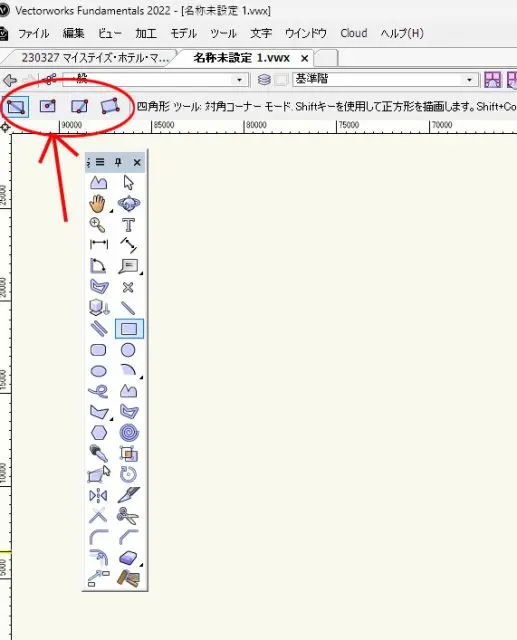 こちらの記事では、ベクターワークスでの作業で、オブジェクトの作成の仕方と区画内の面積を確認する方法を確認していきましょう。