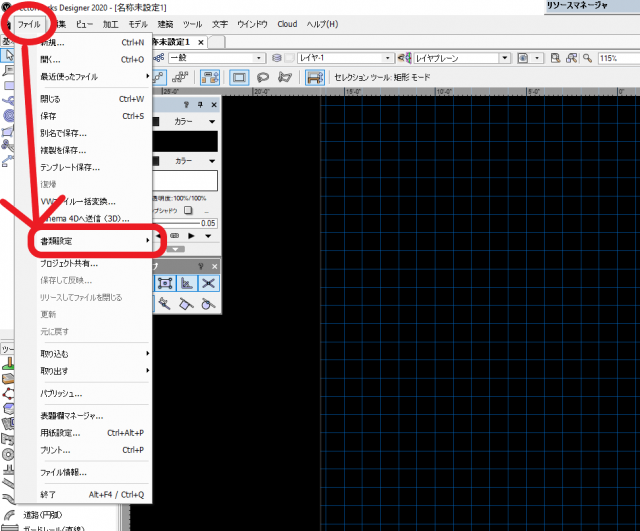 では早速、Vectorworks Architectにて設定をしていきましょう(Windowsでの操作で説明していきます)。
