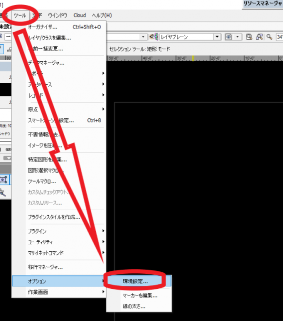 1. ツールをクリックし、オプション内の環境設定を選択する。