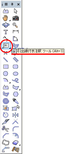 基本パレット内の「引出線付き注釈ツール」を選択。