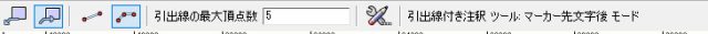 上部タブ部分に引き出し線ツールの設定が表示されています。