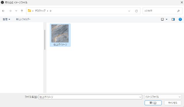 「リソース作成」のダイヤログが表示されますので、「作成する種類」の中から「イメージ」を選択し「作成」をクリック、「イメージファイルからの取り込み(I)」を選択し、取り込みたい画像を選択します。