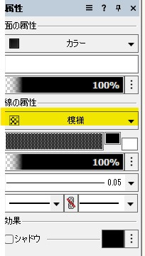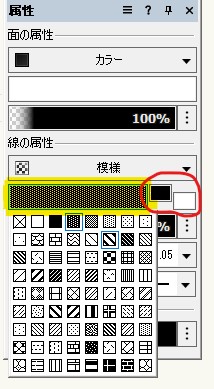 次に模様線を書いてみましょう。線の属性を「模様」にします。