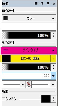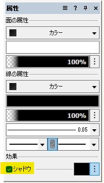 属性内の「シャドウ」に✓を入れると選択された線に影が付きます。