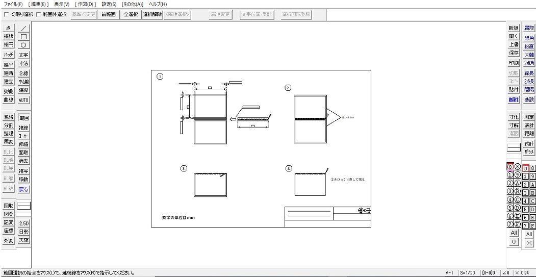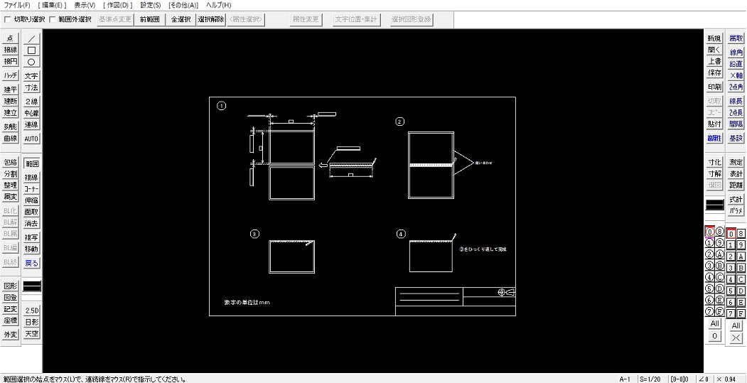この文字と図形との組み合わせでようやく図面らしくなってきます。