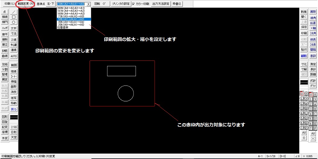 最後に「印刷」をクリックするか、どこでも良いので作業領域内で左クリックするとその印刷範囲内のデータが出力されます。