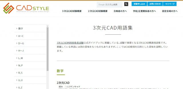 用語集は3次元CAD利用技術者試験の公式ガイドブックに掲載されている中でも、特に重要な語句がピックアップされています。機械分野での専門用語が多数あり、3次元CADの重要度が自動車や電化製品などの機械工業系に集中していることを物語っています。「グレゴリ曲面」「パラメトリック曲線」などの表現方法も多数登場します。