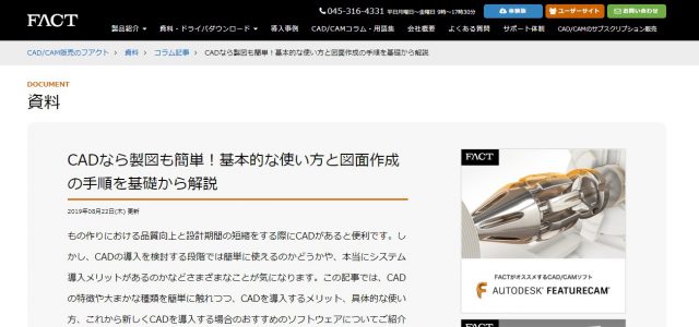 CAD/CAMシステムやNC工作機械などを製造・販売されているフアクトさんのCADに関するコラム記事です。機械工業系のシステムを自社で構築し、ソフトウェアを含むコンサルティング業務も展開されています。その中でのCADの導入メリットなどについて、わかりやすく解説されているのが本記事になります。