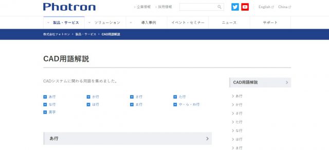 CADに関わる専門用語を分かりやすく解説している用語集です。CADは、工業製品や建築物などの設計や製図をコンピュータを用いて行います。分からない用語の意味を調べる際に、ぜひご利用ください。