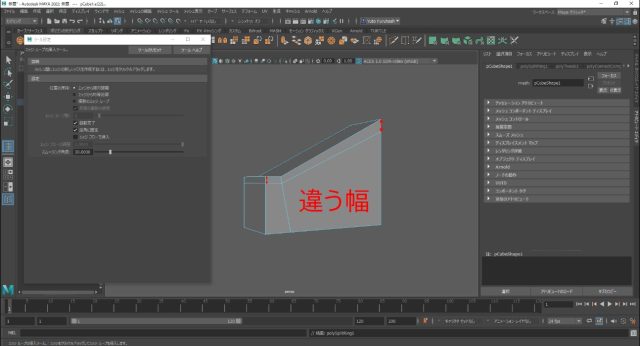 幅の異なる面に分割エッジを入れる際は、Relative distance from edge(エッジからの相対距離)を使用します。