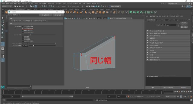 このツールは、任意のエッジを一本選択し、ツールを使用することでエッジに対し垂直にエッジを挿入することが出来ます。任意のエッジを一本選択した状態で、