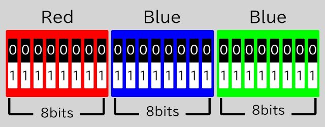 通常コンピュータでは、RGBをそれぞれ8bitで表現します。