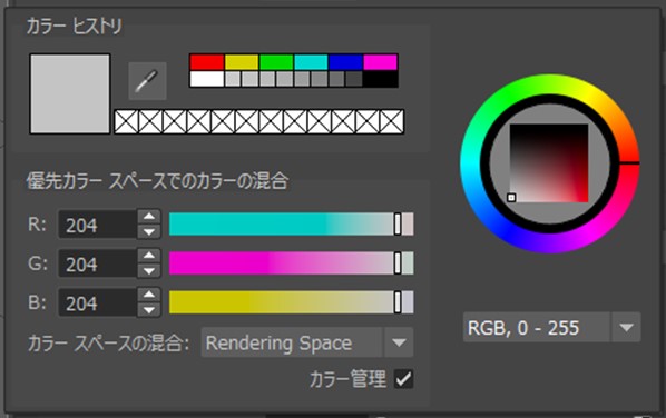 他にも16bitや32bitで表すRGBもありますが、bit数が多くなるにつれてデータ量も増え、表示できるモニターなどの制限や一般人には判別がつかない為、基本的には8bitのRGBを使用します。