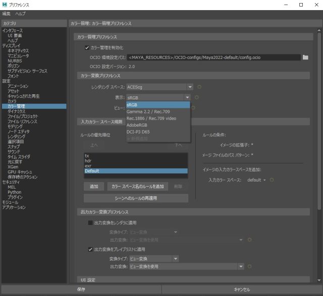 mayaでは、カラースペースを変更することが多々あるので紹介します。